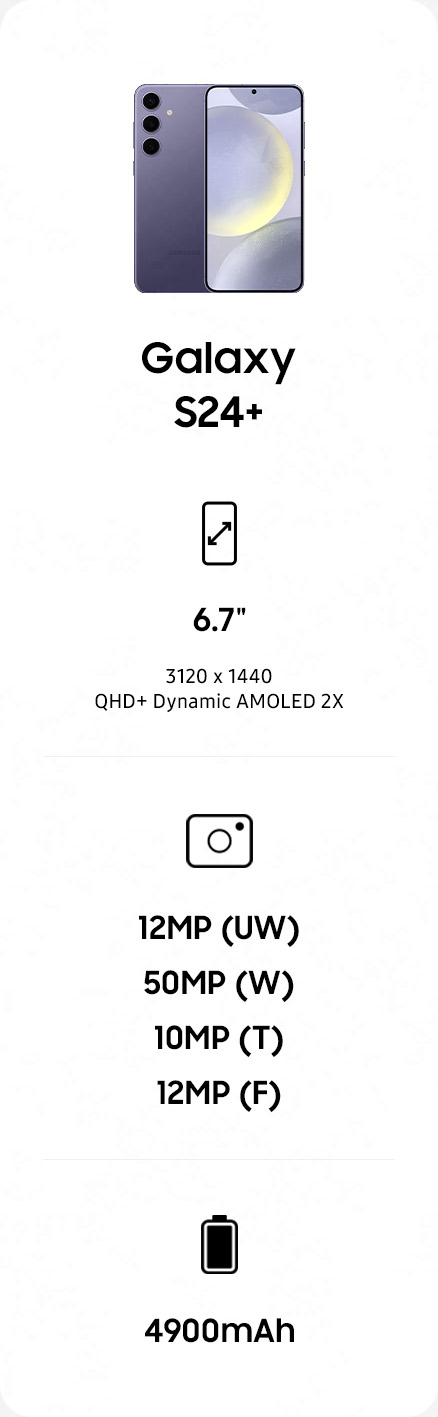 They're the upgrades you've waited for. More screen. More battery. More processing power. There's so much more to love about Galaxy S24 and S24+.